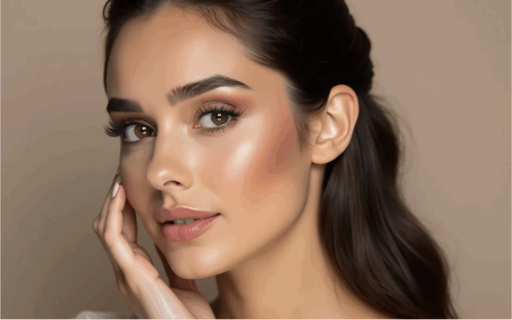 For those who prefer something subtle yet radiant, champagne-toned eyeshadows and a glowy base make a perfect match.